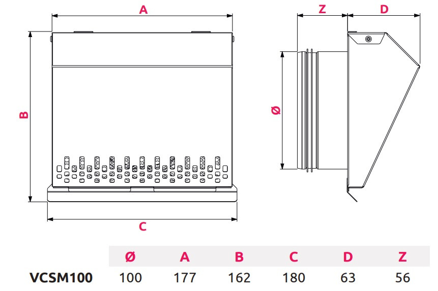 AwentapPRO VCSM100I beszívó oldali fém fali rács, rovarhálóval, INOX NA100