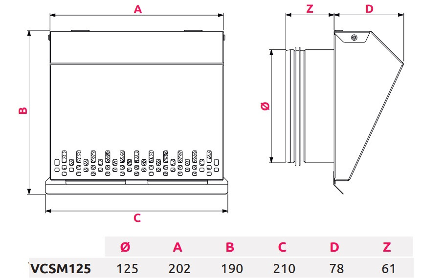 • Csőcsonk átmérő: 125 mm