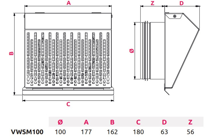 AwentapPRO VWSM100GR kifúvó oldali fém fali rács, rovarhálóval, Grafit színben NA100