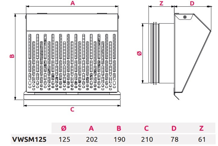 AwentapPRO VWSM125 kifúvó oldali fém fali rács, rovarhálóval, fehér színben NA125