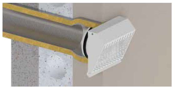 Kültéri színterezett, kifúvó oldali, fém fali rács, hővisszanyerős rendszerekhez